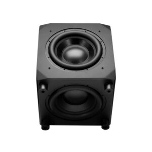 The Airmotiv S10 is a powered subwoofer that features a 10” heavy duty downward firing active low frequency driver, and a 10” front firing passive radiator.